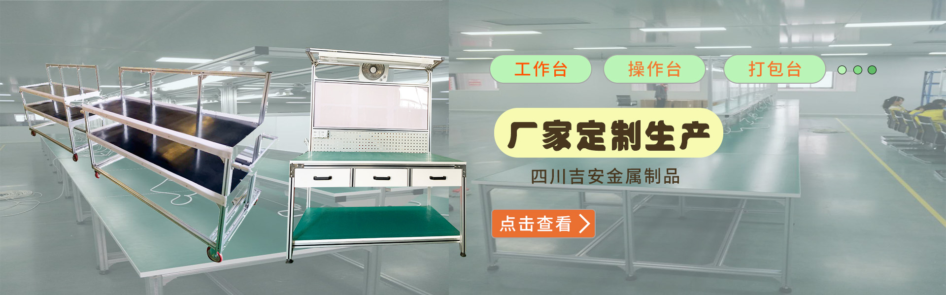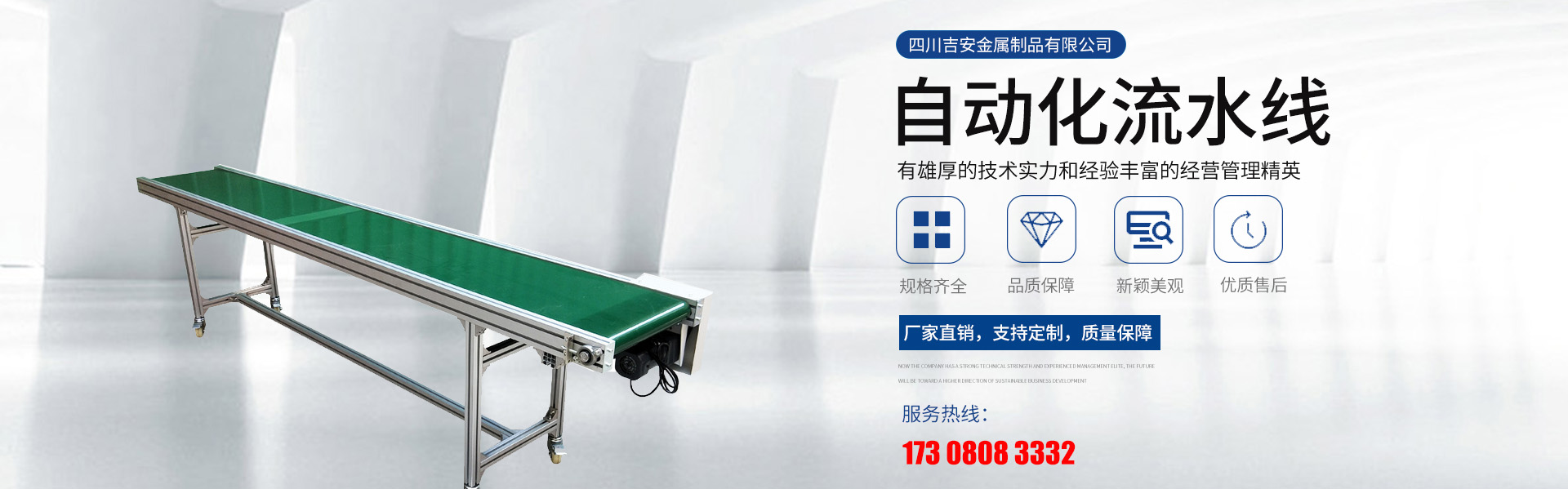 四川吉安金屬制品有限公司是集工業(yè)鋁型材及配件、貨架、工作臺(tái)、皮帶輸送線、自動(dòng)化流水線、線棒精益管及扣件、鈑金和鋁合金流利條、鋁線棒及扣件、倉(cāng)儲(chǔ)設(shè)備、物流器具、周轉(zhuǎn)臺(tái)車(chē)、工位器具、非標(biāo)器具設(shè)...